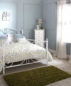 Available in either a black or white finish, the Panache crystal metal Bed has a scroll feature to the head and foot ends, giving an extra sculpted look to an already striking bed frame and is finished off with crystal finials.The panache bed will surely be the focal point of any classic or modern bedroom decor ,been the envy of many.The bed is very easy on the eye and even easier on the purse.