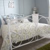 Tuscany metal bed frame is made from strong tubing which makes the bed very sturdy. This silver bed is a best seller and is very practical. The chrome caps round off the footboard and headboard very nicely and it also comes with a strong mesh base for the mattress to sit on giving it the look of a vey stylish bed which will look great in any bedroom décor. The bed is available in 3 sizes 3″ single 4″ small double and 4″ft6 in a standard double.