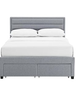 Greenwich Contemporary Bed, offers a soft feel with its beautiful upholstered soft Grey deep panelled headboard, offering a real feature to any Bedroom. This bed not only looks great, but offers practicality with four spacious draws concealed within the bedframe for those needing extra storage space.